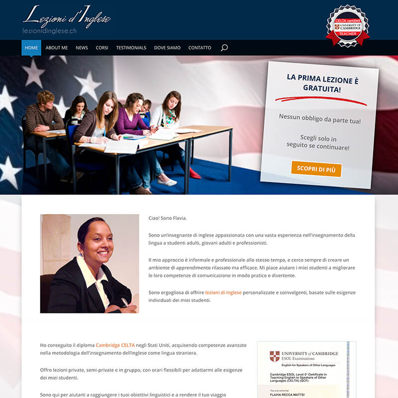 Questo sito è stato sviluppato per un’insegnante d’inglese con qualifiche internazionali e attiva nel Canton Ticino.